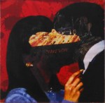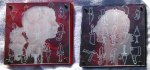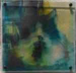 I’d throw paint down, frisket the panel, cut out my pattern, maybe throw more paint down, maybe gel medium a layer of texture down, and then pull that frisket off, put more down and kept continuing the process. Then there are a few pieces here which have no paint-slinging involved, they are strictly just transferred images on top of other transferred images.